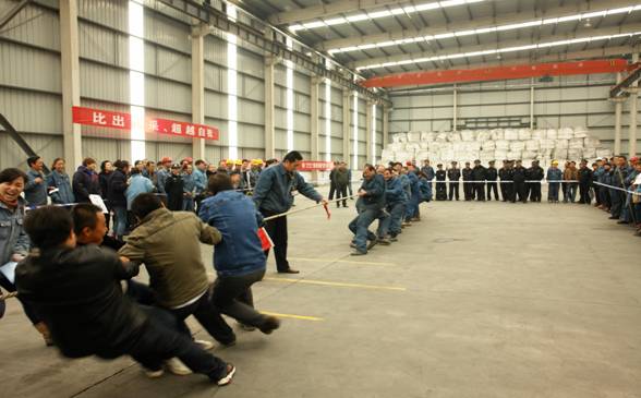 經(jīng)過(guò)賽前的精心準(zhǔn)備和熱身訓(xùn)練,隊(duì)員為集體爭(zhēng)取榮譽(yù),賽出了亮點(diǎn)。拔河比賽是考驗(yàn)一個(gè)團(tuán)隊(duì)凝聚力、合作精神以及組織紀(jì)律性的最好時(shí)機(jī),賽場(chǎng)外不時(shí)爆發(fā)出陣陣熱烈的加油助威聲,場(chǎng)上隊(duì)員鼓足了勁兒,連平時(shí)優(yōu)雅秀麗的女士們此時(shí)也變成了大力士。最后,經(jīng)過(guò)激烈的淘汰賽,長(zhǎng)春炭素有限公司、電解一車間、電解二車間、鑄造車間隊(duì)進(jìn)入了最后的決賽。在比賽中,不少隊(duì)員的手磨破了皮,但卻沒(méi)有人在意,正是這頑強(qiáng)拼搏的精神鑄就了我們物產(chǎn)北川工業(yè)園區(qū)蓬勃向上的生命力。