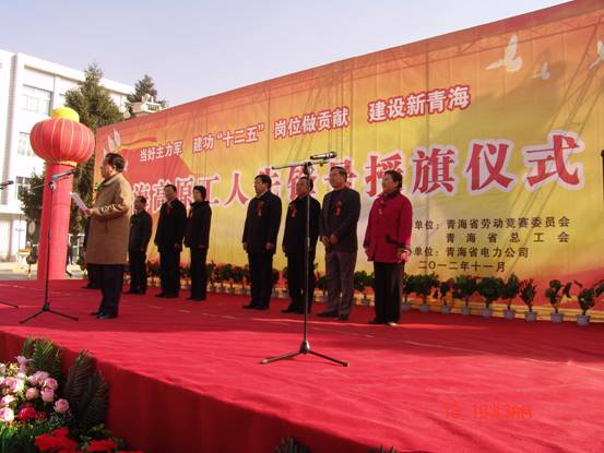 11月13日上午,省勞動(dòng)競(jìng)賽委員會(huì)、省總工會(huì)舉行青海高原"工人先鋒號(hào)"授旗儀式。省委常委、省勞動(dòng)競(jìng)賽委員會(huì)常務(wù)副主任、省總工會(huì)主席蘇寧、省總工會(huì)常務(wù)副主席郎國(guó)清、經(jīng)審委員會(huì)主任劉西昆、副主席劉華芳等領(lǐng)導(dǎo)參加授旗儀式,并為榮獲青海高原"工人先鋒號(hào)"的青海長(zhǎng)春炭素有限公司成型車(chē)間等40個(gè)先進(jìn)集體授旗。